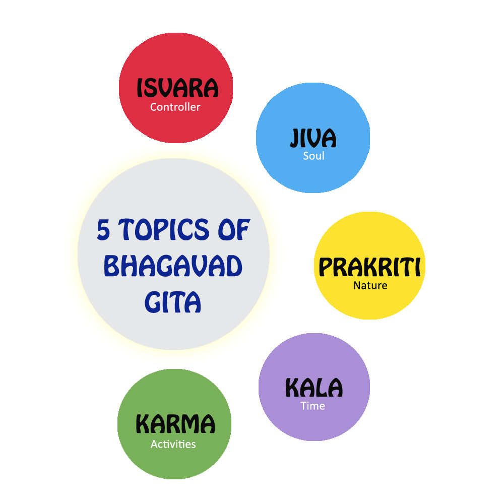This JOSD course, in six chapters, covers the five main topics of the Bhagavad Gita